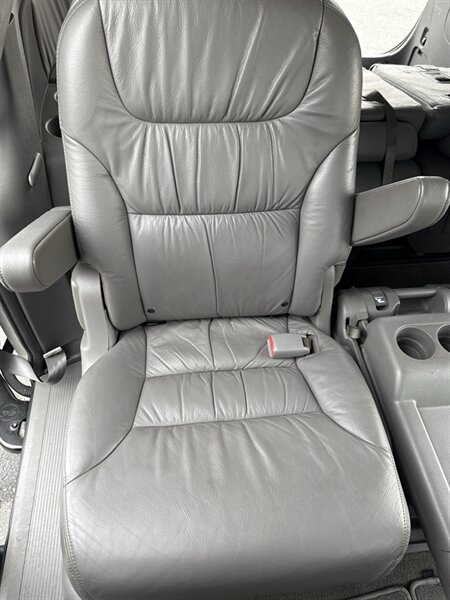2008 Honda Odyssey EX-L FWD, a versatile and family-friendly minivan. Powered by a robust 3.5L V6 engine delivering 241 horsepower and 242 ft-lbs of torque, this vehicle offers a smooth and responsive driving experience. The exterior is finished in a sleek Silver Pearl Metallic, while the interior features comfortable grey leather seating, designed for both style and durability.