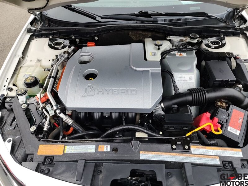 2011 Ford Fusion Hybrid powered by a 2.5L Hybrid I4 (191 hp) with a continuously variable transmission, finished in White Suede with Medium Light Stone leather interior, under 99,000 miles and in very nice overall condition. Features include hybrid-specific regenerative braking and energy display, Back-Up Camera, Keyless Start, Blind Spot Monitor, Sun Roof, Power/Heated Front Seats, front-wheel drive, alloy wheels, power windows/locks/mirrors, remote keyless entry, cruise control, steering-wheel audio controls, Ford SYNC hands-free phone/audio and auxiliary input, AM/FM/CD, air conditioning, tire pressure monitoring, ABS, stability/traction control and front/side/curtain airbags with LATCH child-seat anchors. EPA-rated at 41 MPG city / 36 MPG highway; clean CARFAX, one owner.