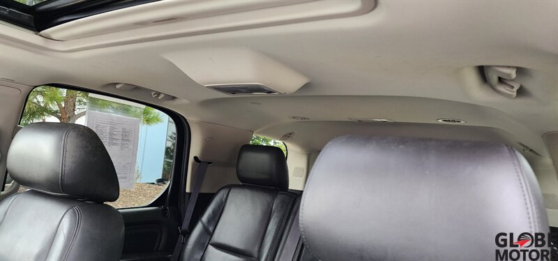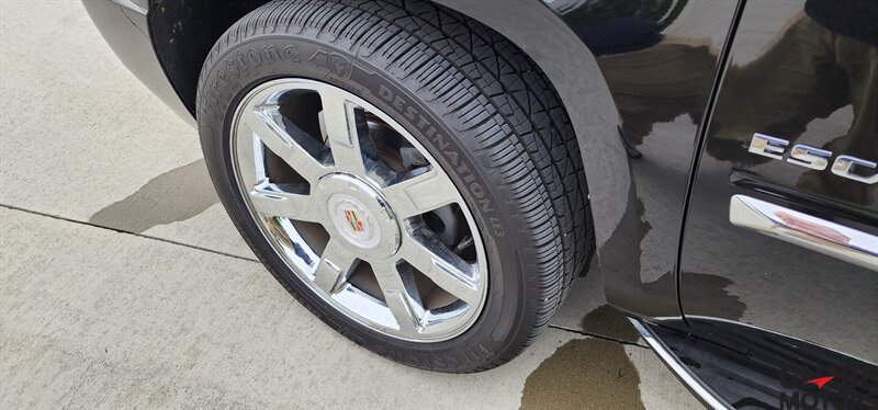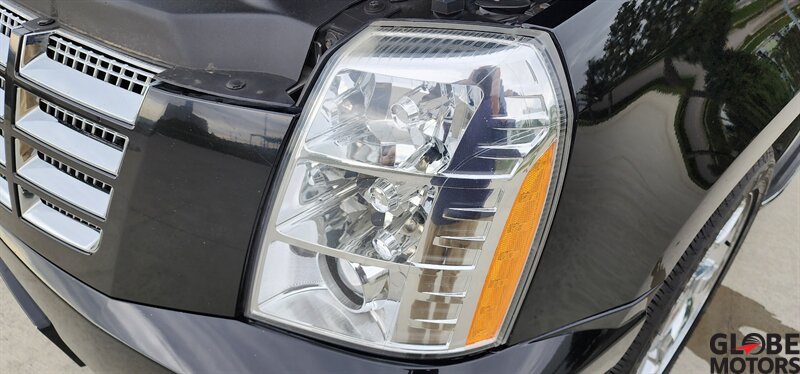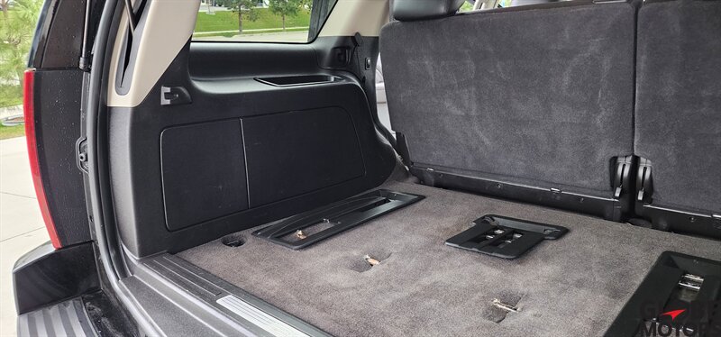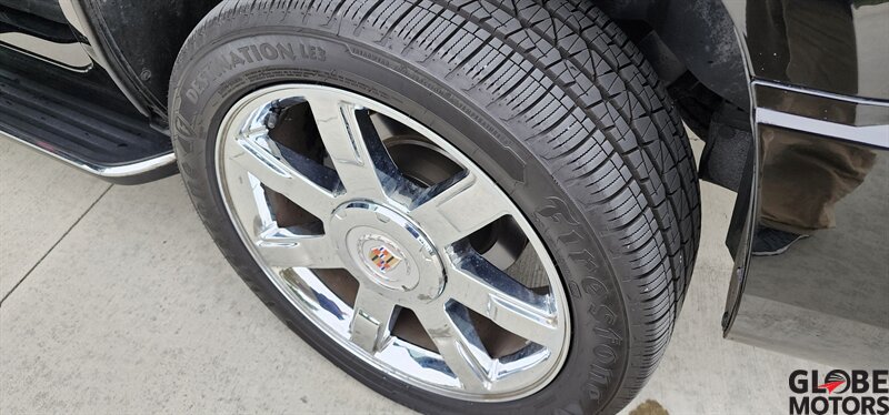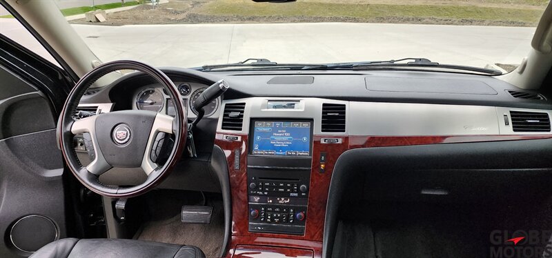 2012 Cadillac Escalade Luxury AWD — Black Raven exterior with Ebony leather interior. Powered by a 6.2L Flex Fuel V8 producing 403 hp and 417 ft·lb of torque, built for confident highway performance.