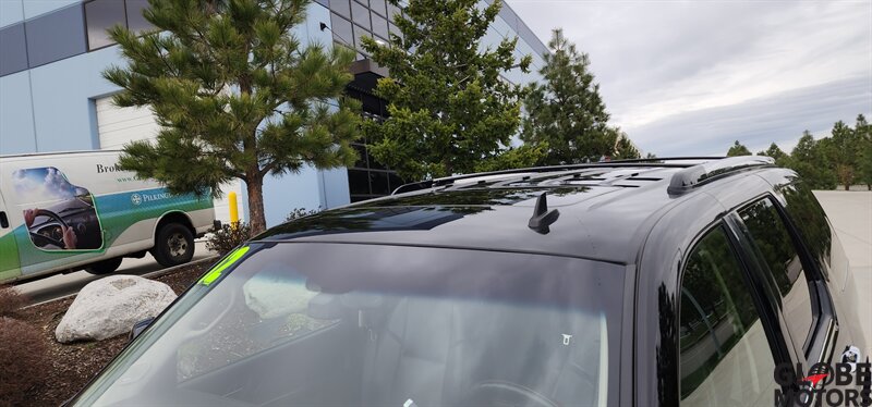 - Exterior: gloss Black Raven paint, chrome trim, projector headlights with integrated fog lamps, power-adjustable heated exterior mirrors, automatic wipers and power liftgate/tailgate.
