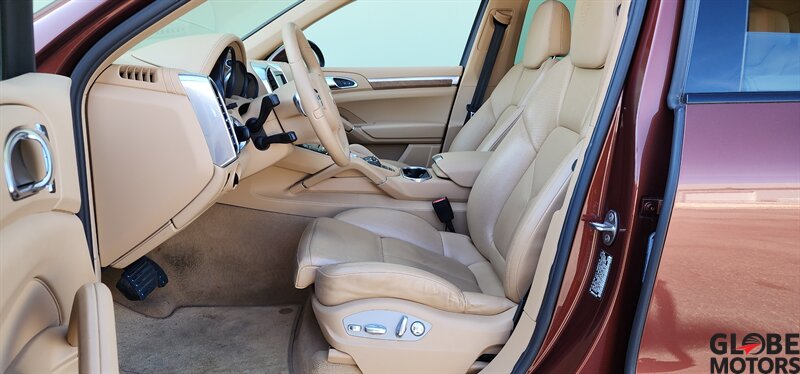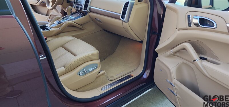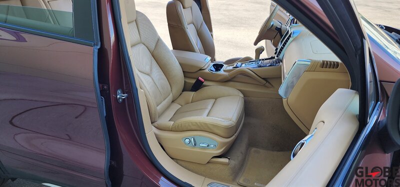 2012 Porsche Cayenne S in Burgundy with a Tan leather interior. Powered by a 4.8L V8 producing 400 hp and 369 lb-ft, this Cayenne has under 53,000 miles (averaging less than 4,000 miles per year), and comes with a clean CARFAX and one owner.