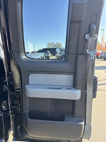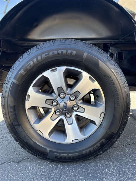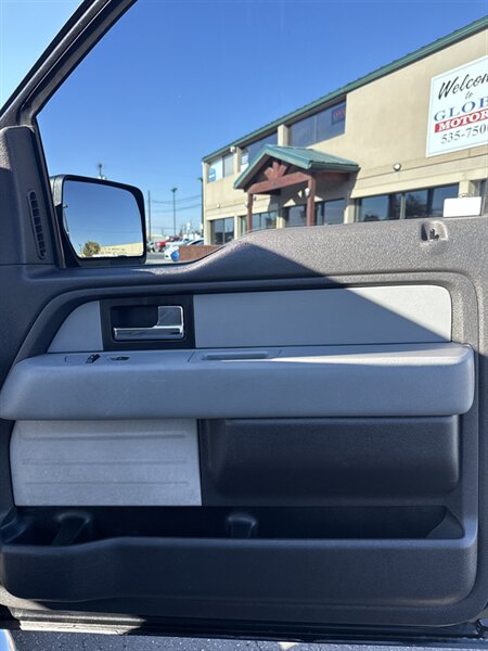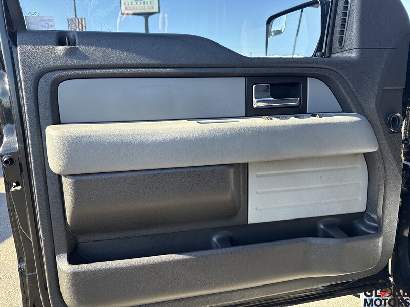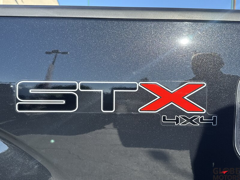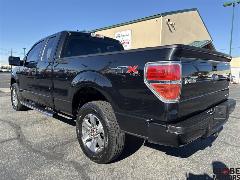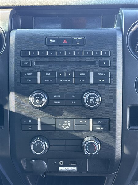 This F-150 STX comes equipped with factory default features, including 18-inch cast aluminum wheels, air conditioning, a four-speaker audio system with an auxiliary input, fog lamps, running boards, tow hooks, Trailer Sway Control, Trailer Tow Package, Select Shift Transmission, and a useful cargo management system. Additionally, it includes power windows and locks, cruise control, and a tilt steering wheel for enhanced driving comfort.