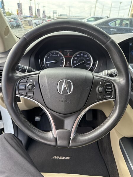 2014 Acura MDX SH-AWD with Technology Package, featuring a striking White Diamond Pearl exterior and a sophisticated Parchment leather interior. Powered by a robust 3.5L V6 engine delivering 290 horsepower and 267 ft-lbs of torque, this AWD SUV offers a balanced blend of performance and efficiency, achieving 18 MPG in the city and 27 MPG on the highway.