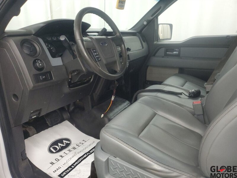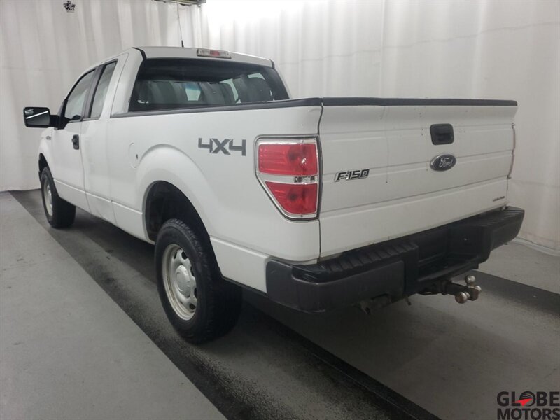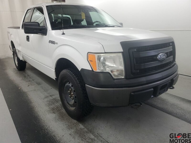 2014 Ford F-150 XL Extended Cab $WD in Oxford White with Steel Gray leather interior. Powered by the 3.7L Flex Fuel V6 (302 hp, 278 lb-ft) paired with Ford’s 6-speed automatic. Factory equipment includes the Extended Cab body, standard safety systems (front and side airbags, curtain airbags, anti-lock brakes, electronic stability and traction control), air conditioning, cruise control, power steering, AM/FM audio with auxiliary/USB inputs and steering-wheel controls.