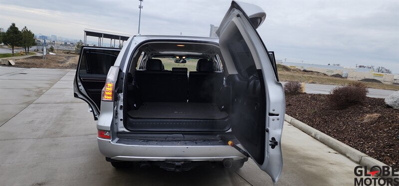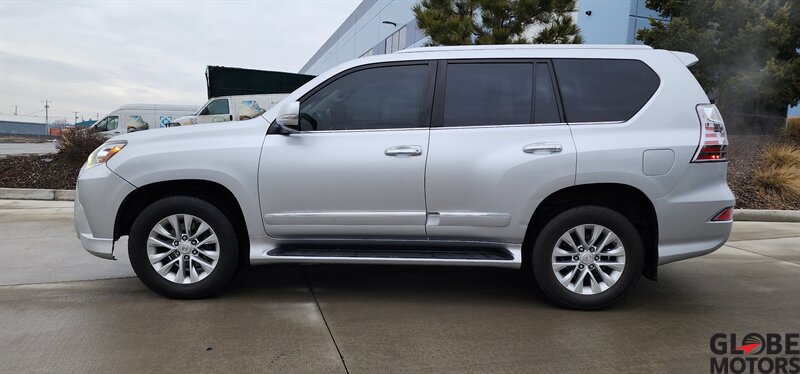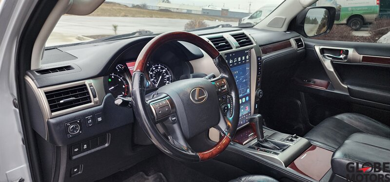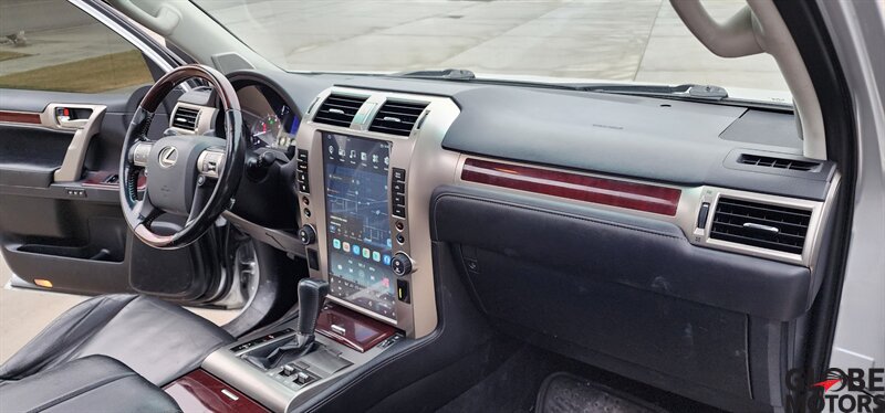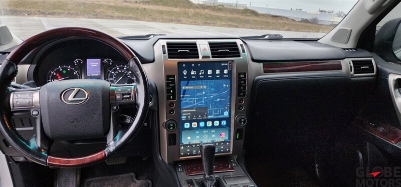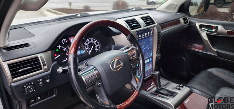 2017 Lexus GX 460 AWD offers a robust driving experience with its powerful 4.6L V8 engine, delivering 301 horsepower and 329 lb-ft of torque. Finished in Silver Lining Metallic, this SUV features a sleek exterior that complements its sophisticated Black leather interior. Standard factory features include a premium audio system, Bluetooth connectivity, navigation, and a rearview camera for enhanced safety and convenience. With a fuel efficiency of 15 MPG in the city and 18 MPG on the highway, the GX strikes a balance between performance and practicality. This vehicle comes with a clean CARFAX report, ensuring peace of mind for potential buyers.