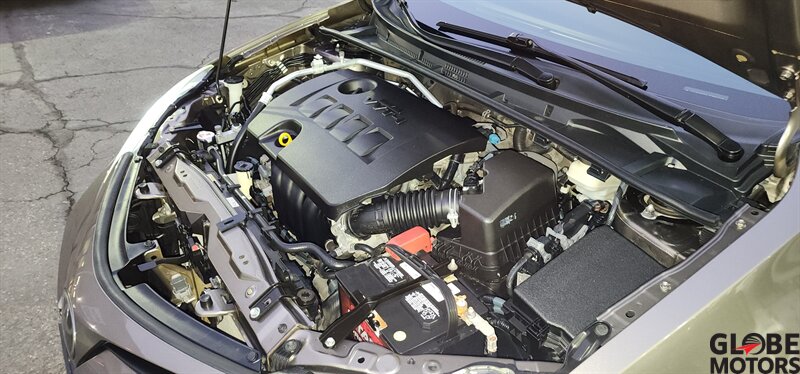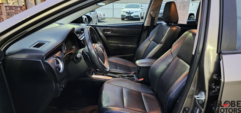 2018 Toyota Corolla XSE in Slate Metallic with a Black interior, powered by a 1.8L I4 producing 132 hp and 128 lb-ft of torque (28 MPG city / 35 MPG highway). Factory-standard equipment includes the Toyota Safety Sense-P suite (Pre-Collision System with Pedestrian Detection, Lane Departure Alert with Steering Assist, Dynamic Radar Cruise Control, Automatic High Beams), a 7-inch Entune touchscreen with Bluetooth and USB, rearview camera, push-button start with smart key, leather-trimmed SofTex seating with heated front seats, dual-zone automatic climate control, 17-inch alloy wheels and sporty exterior accents. This vehicle is in excellent overall condition and has a clean CARFAX.