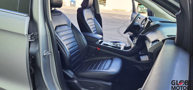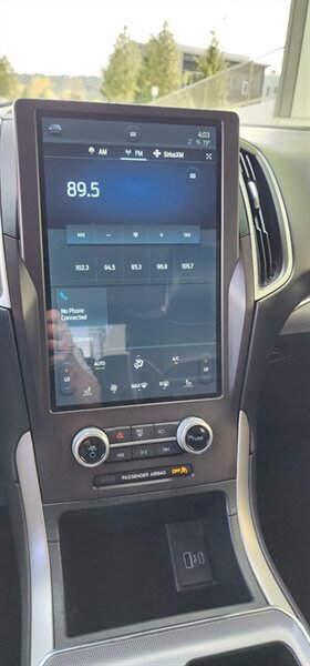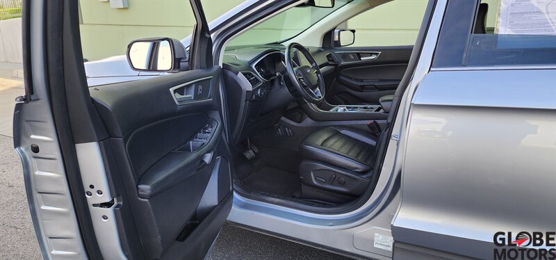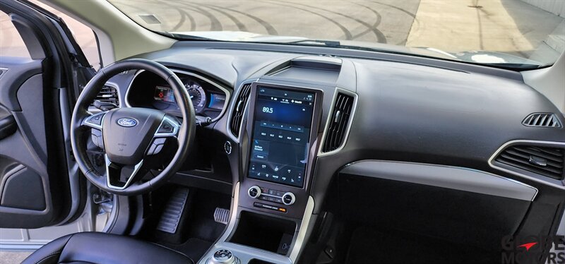 2021 Ford Edge SEL AWD in Iconic Silver with Ebony leather interior. Powered by a 2.0L EcoBoost turbo I4 producing 250 hp and 280 lb-ft, EPA-rated at 20 MPG city / 28 MPG highway. 92k Miles. Factory-equipped features include all-wheel drive, an 8-inch SYNC 3 touchscreen with Apple CarPlay/Android Auto, Bluetooth and USB connectivity, dual-zone automatic climate control, keyless entry with push-button start, leather-trimmed power front seats and 60/40 split-folding rear seat, rearview camera, alloy wheels and LED daytime running lights. Standard safety and stability systems include ABS, traction and stability control, multiple airbags and Ford Co-Pilot360 driver-assist features such as Pre-Collision Assist with Automatic Emergency Braking and Lane-Keeping assist. Vehicle is in nice overall condition with a clean CARFAX.