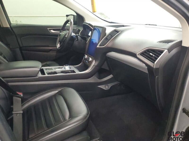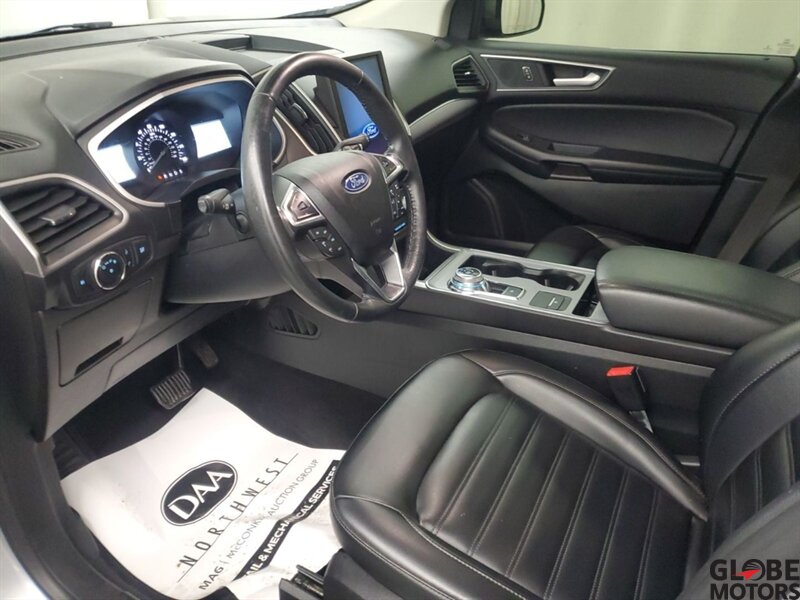 2021 Ford Edge SEL AWD in Iconic Silver with Ebony leather interior. Powered by a 2.0L EcoBoost turbo I4 producing 250 hp and 280 lb-ft, EPA-rated at 20 MPG city / 28 MPG highway. 92k Miles. Factory-equipped features include all-wheel drive, an 8-inch SYNC 3 touchscreen with Apple CarPlay/Android Auto, Bluetooth and USB connectivity, dual-zone automatic climate control, keyless entry with push-button start, leather-trimmed power front seats and 60/40 split-folding rear seat, rearview camera, alloy wheels and LED daytime running lights. Standard safety and stability systems include ABS, traction and stability control, multiple airbags and Ford Co-Pilot360 driver-assist features such as Pre-Collision Assist with Automatic Emergency Braking and Lane-Keeping assist. Vehicle is in nice overall condition with a clean CARFAX.