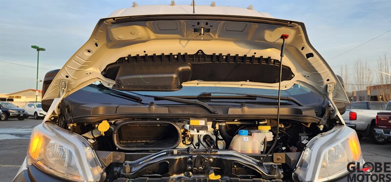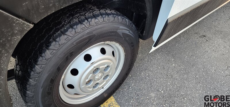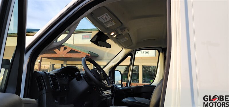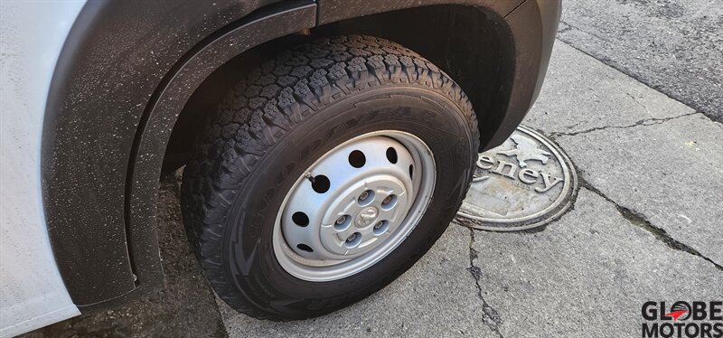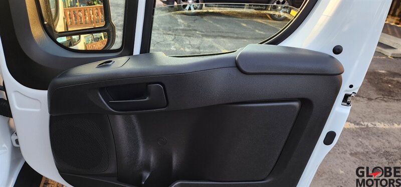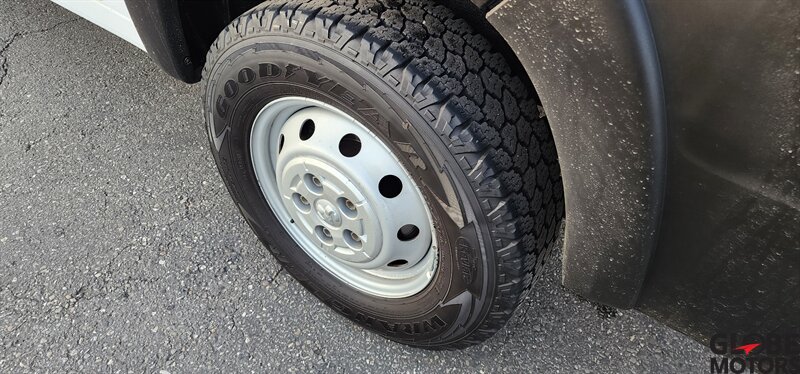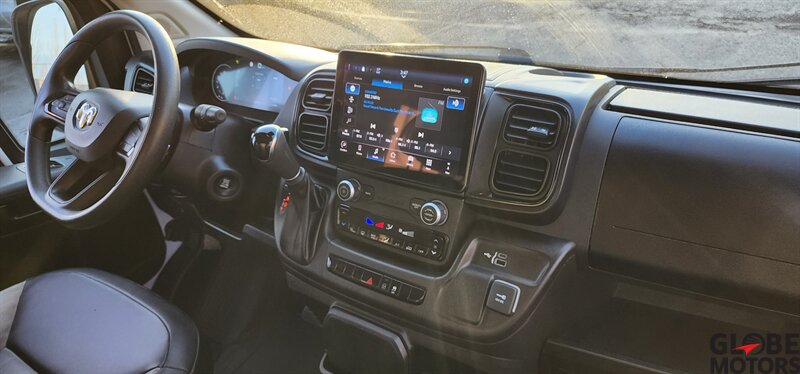 This ProMaster comes equipped with a range of factory default features, including a rearview camera for enhanced visibility, a 7-inch touchscreen infotainment system with Bluetooth connectivity, and a comprehensive suite of safety features such as traction control and stability control. Additional conveniences include keyless entry, power windows, and air conditioning, making it a comfortable workspace.